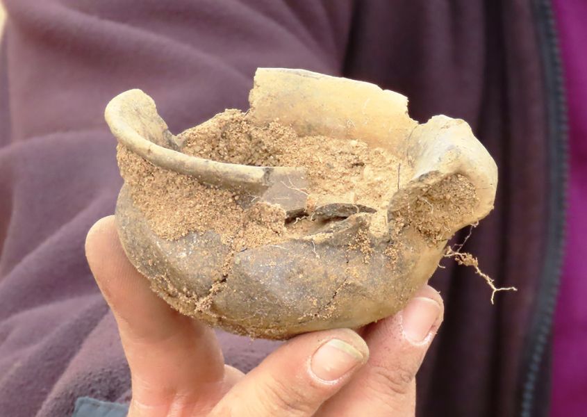 Die Nahaufnahme zeigt ein Beigefäß der Bestattung aus dem Urnengräberfeld. Foto: (Wsp) Nyari