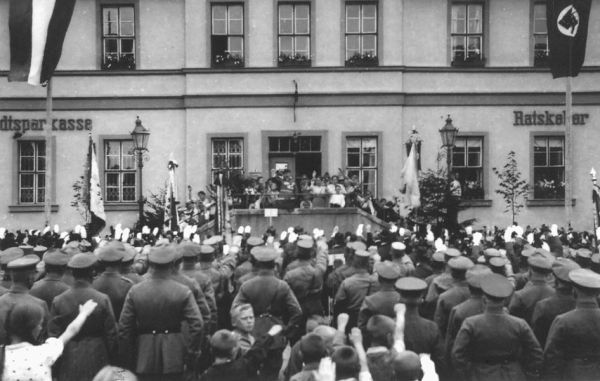 Düstere Zeiten: der Dübener Rathausvorplatz in den 1930er Jahren Foto: Archiv L. Fritzsche